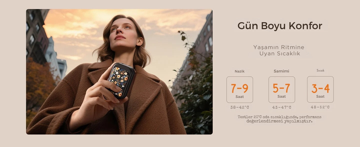Tek şarjla gün boyu sıcaklık hissi yaşatır.